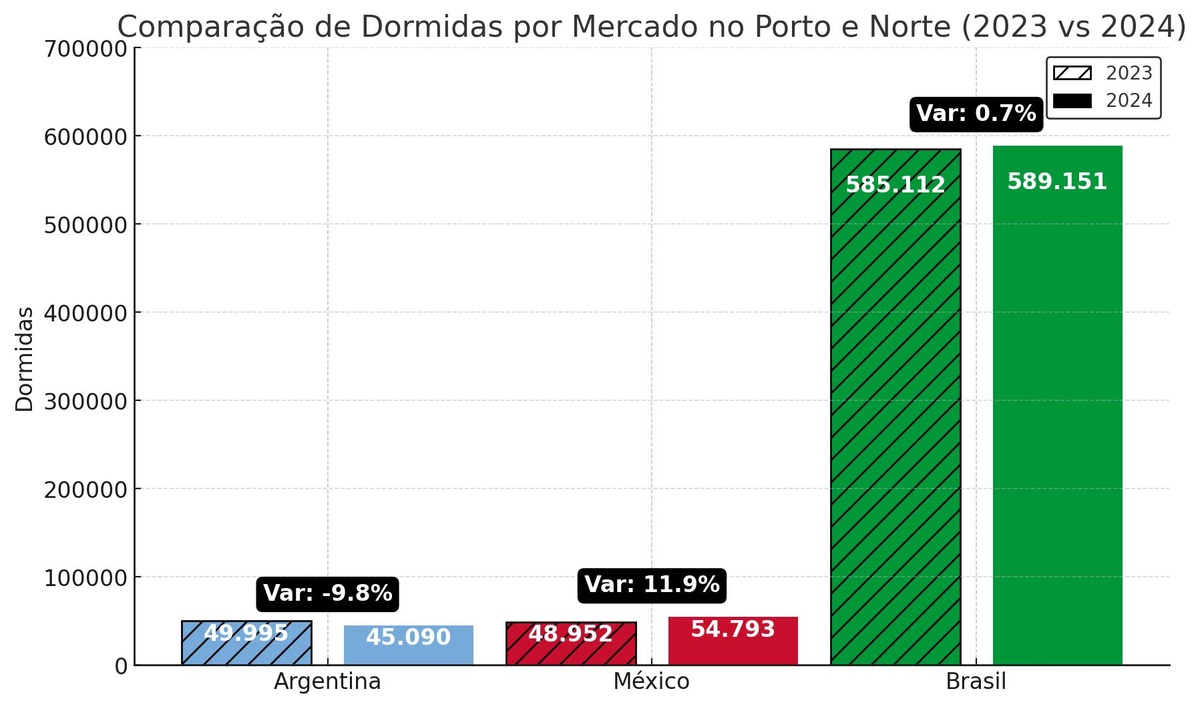 A procura dos turistas argentinos pelo Porto e Norte decresceu, em 2024, cerca de 9,8% em relação a 2023, segundo o indicador dormidas. Em 2024, a Argentina foi o 24.º mercado de procura externa para o Porto e Norte.