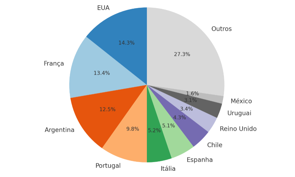 Brasil (quota de 22,7%), Chile (14,9%) e Uruguai (13,2%), países vizinhos, são os destinos mais procurados nas viagens ao estrangeiro, mas Espanha (8,9%) e Itália (5,4%) também estão no top 10, acima da Bolívia (3,8%), México (3,5%) e República Dominicana (2,2%).