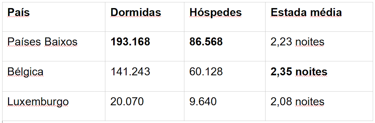 A sazonalidade do turismo com origem no Benelux é bem vincada, com quebras acentuadas a partir de setembro.