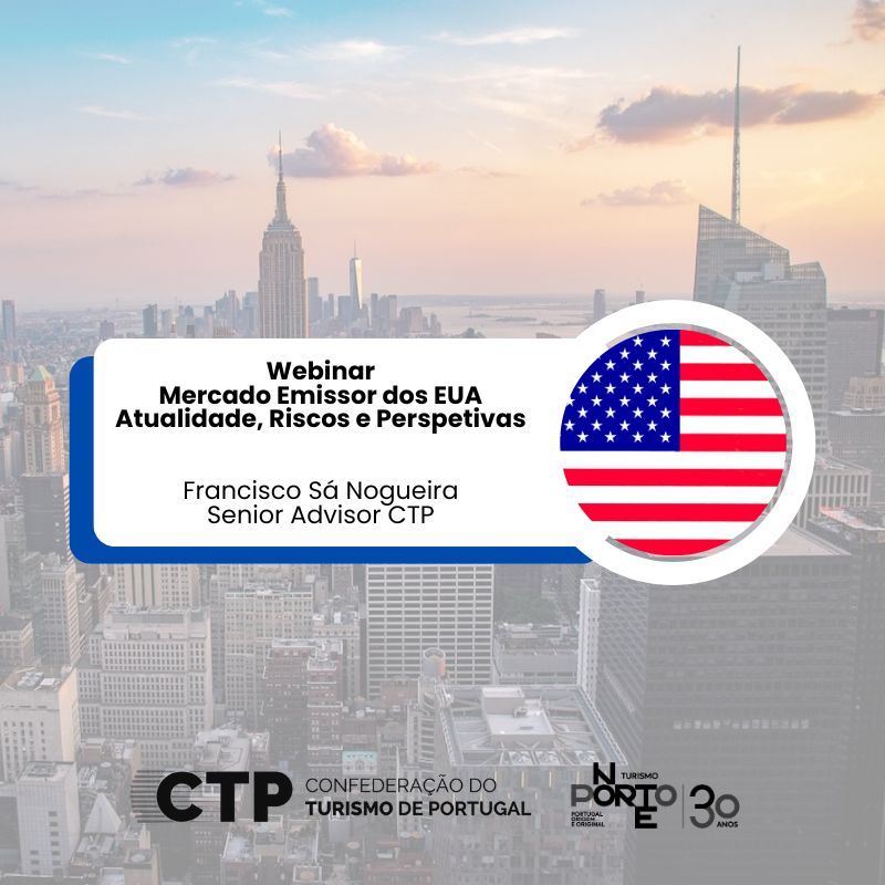 O Porto e Norte de Portugal, em articulação com a Confederação do Turismo de Portugal (CTP), promoveu o webinar técnico e exclusivo para associados "Webinar Mercado emissor dos EUA – Atualidade, Riscos e Perspectivas", com apresentação de Francisco Sá Nogueira, Senior Advisor da CTP, focado na atual situação geopolítica, nos indicadores macroeconómicos dos EUA, no seu possível impacto económico a nível interno desse mercado emissor e a nível global e, em particular, na performance atual e futura do setor turístico em Portugal.