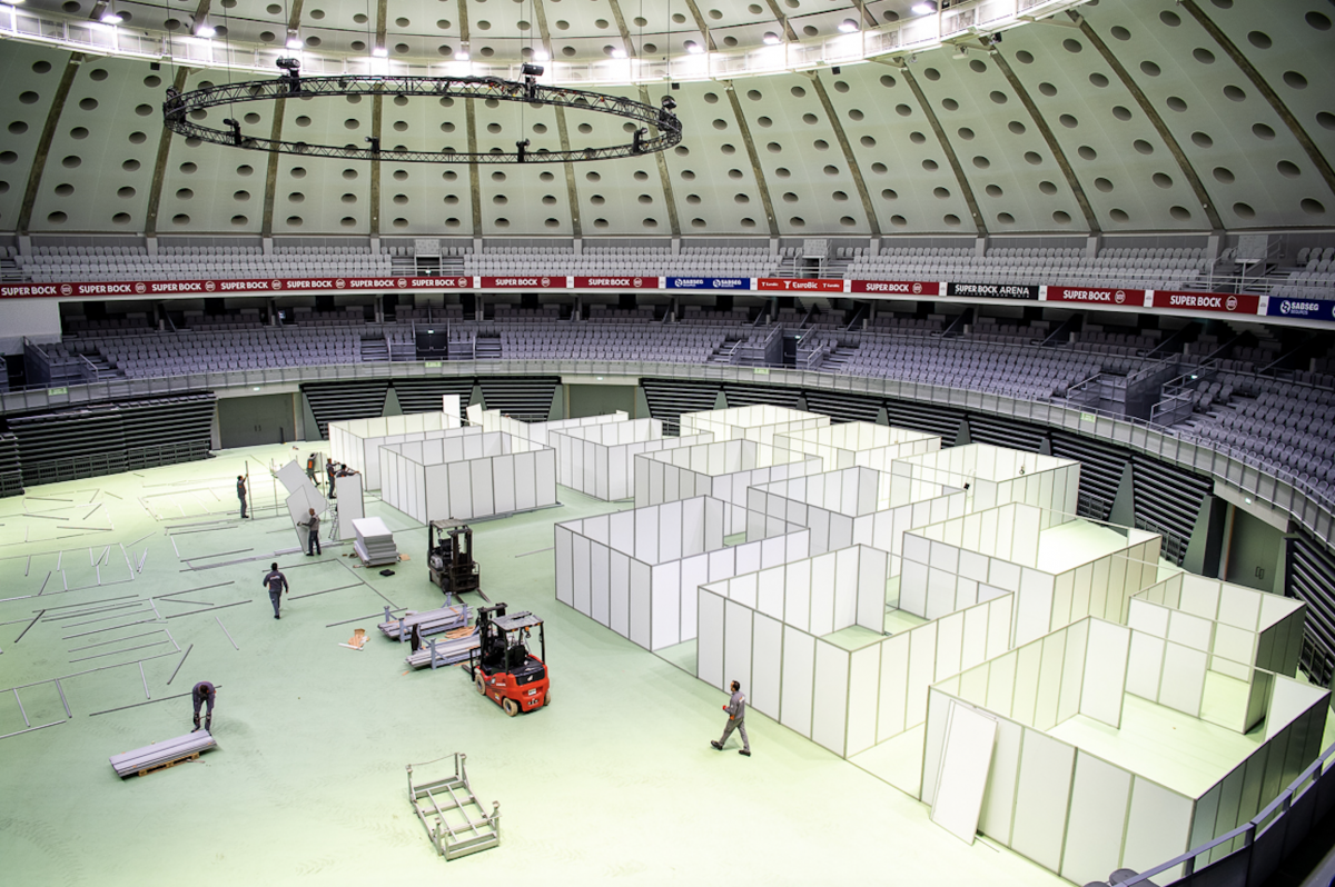 O Super Bock Arena - Pavilhão Rosa Mota vai ser, dentro de pouco mais de uma semana, o primeiro hospital especial para combater a epidemia de Covid-19 montado no Porto. Os trabalhos começaram hoje em força e a unidade, que servirá de retaguarda aos Hospital de São João e Universitário do Porto (Hospital Geral de Santo António), estarão terminados na próxima semana, podendo receber de imediato os primeiros doentes se para tal houver necessidade.