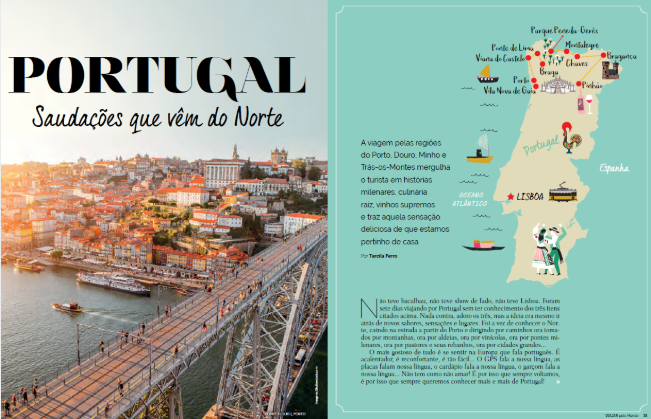 Hoje orgulhamo-nos de partilhar um excelente, extenso e detalhado artigo sobre a Região do Porto e Norte de Portugal. A revista brasileira Viajar pelo Mundo aceitou o nosso desafio de criar um programa personalizado que abrange as quatro sub-regiões do Porto e Norte de Portugal e o resultado é um brilhante jornalismo de viagens com 17 páginas cheias de belas descrições e imagens de boa qualidade da região .